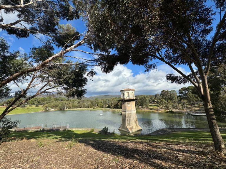 Subsequent days went well, and before we knew it, it was Day 5, heading into Day 6. We had enjoyed wind, heat, rain, more wind, and sunny days. Koalas, kangaroos, a myriad assortment of noisy birds, families of ducks, beautiful plants, trees and flowers all passed before us. We enjoyed seeing the many family groups coming to the park, many with children heading straight to the amazing playground, with the 4 story ‘Bin Chicken’ slide attracting many. As the days passed, we also got to know the many walkers and runners who also enjoy this suburban park.