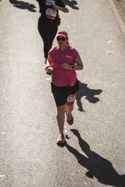 Nature called, so I stopped for a loo break and lost sight of Sally. But I was able to resume my solemn duties of high-fiving every ‘tap for a power up’ sign and thumbs upping every stranger who called my name and dance in front of every band I passed. Normally marathons are painful and demanding, but not this one. I don’t feel like I ran a single second of this event, I simply floated. It was a 26-mile block party and I was determined to revel in every single precious step.