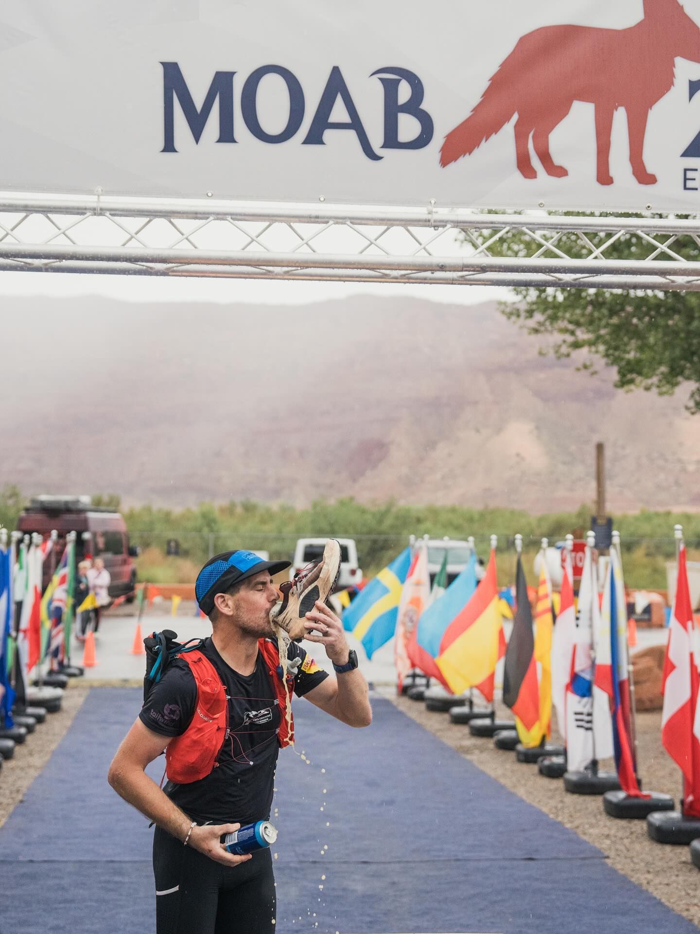 I knew that, with their advantage on the downhills, it wasn't much, so I really had to send it and go. I decided it was time to give it all I had. I bombed it down the hill and ran so fast my shoes felt like they were on fire. High-tempo music made it feel like a movie, as I couldn't control my descent. Adrenaline was high. The final few declines were ahead; running down the single track on the edge made it risky, almost slipping a few times. The final drop was in view and was only 2.5km to the finish. I looked behind and had no view of P11; I knew I was home. I got a message from Ben saying "all you now", knowing I really had to go. The last few kms had been run in days prior so I knew exactly what was coming. How good! The final 2.5km felt like a sprint and so quick. It was fairly flat with some minor undulation. Then, into the final decline onto the main street. I was ecstatic!! I was there!! I made sure to give a huge smile and thank you to the vollies traffic controlling before a sprint across the road and onto the grass. Ben was waiting there before the end as I let out a massive yell, COME ON!! A sprint to the finish with Ben gave him a run for his money. Running through the finish chute was pure elation. I had done it! I was so proud!! P10!! I threw my poles just before the finish and let out a massive "COME ON" as I crossed the line. Letting out all the emotion and something I had been thinking of for the last 30km. I'd done it!! 10th overall in 13:27:51. Huge! Much better than the 15 hours I'd planned for and told Ben. What a finish and what a run!!