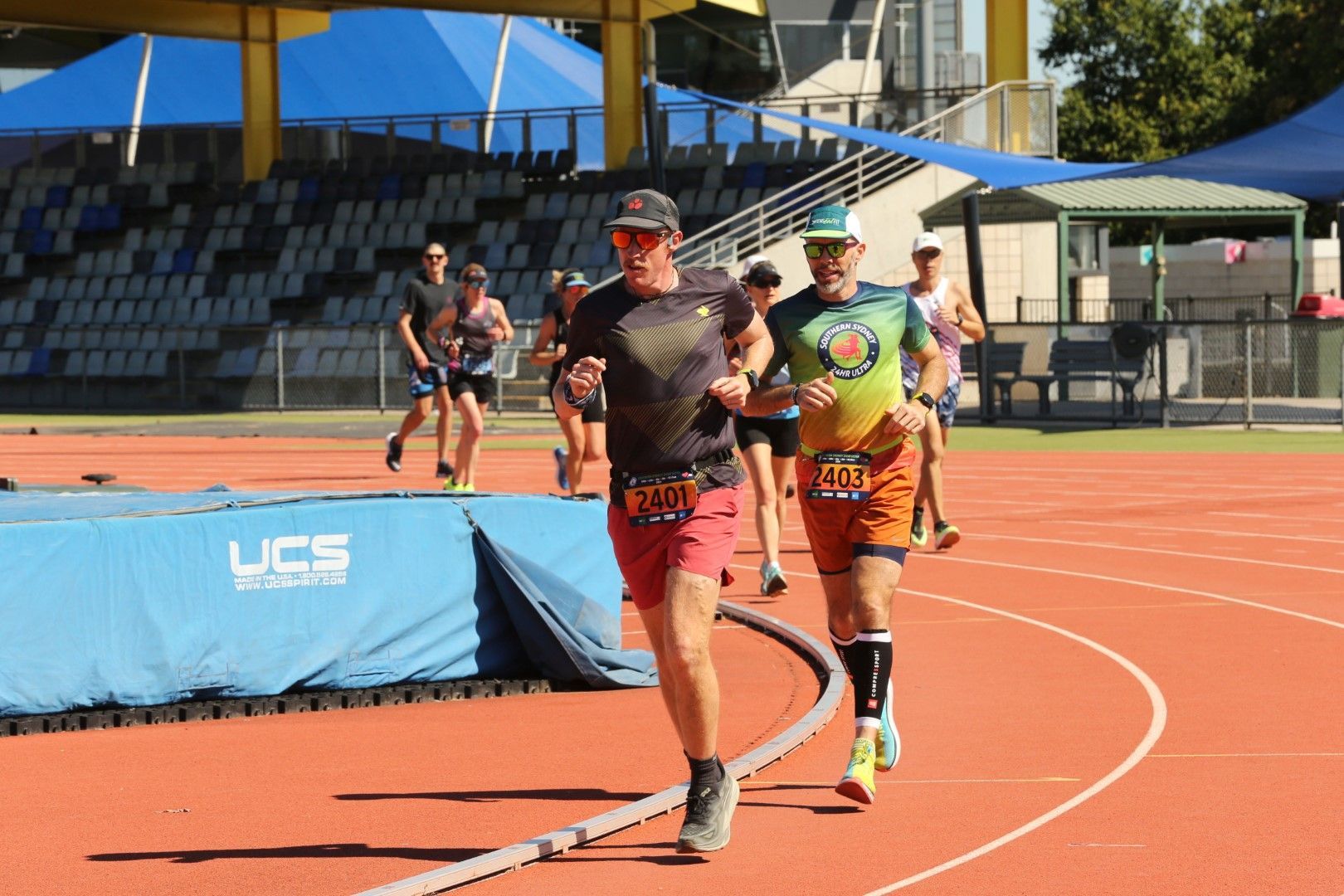 The first few hours felt good. I was running efficiently, chatting with other runners, and making a few new friends which is a great thing about the format of the 400m track events. No-one is ever out of eye-sight of each other and regardless of how many kilometres you’ve covered, you’re all still bunched together and within smiling range.