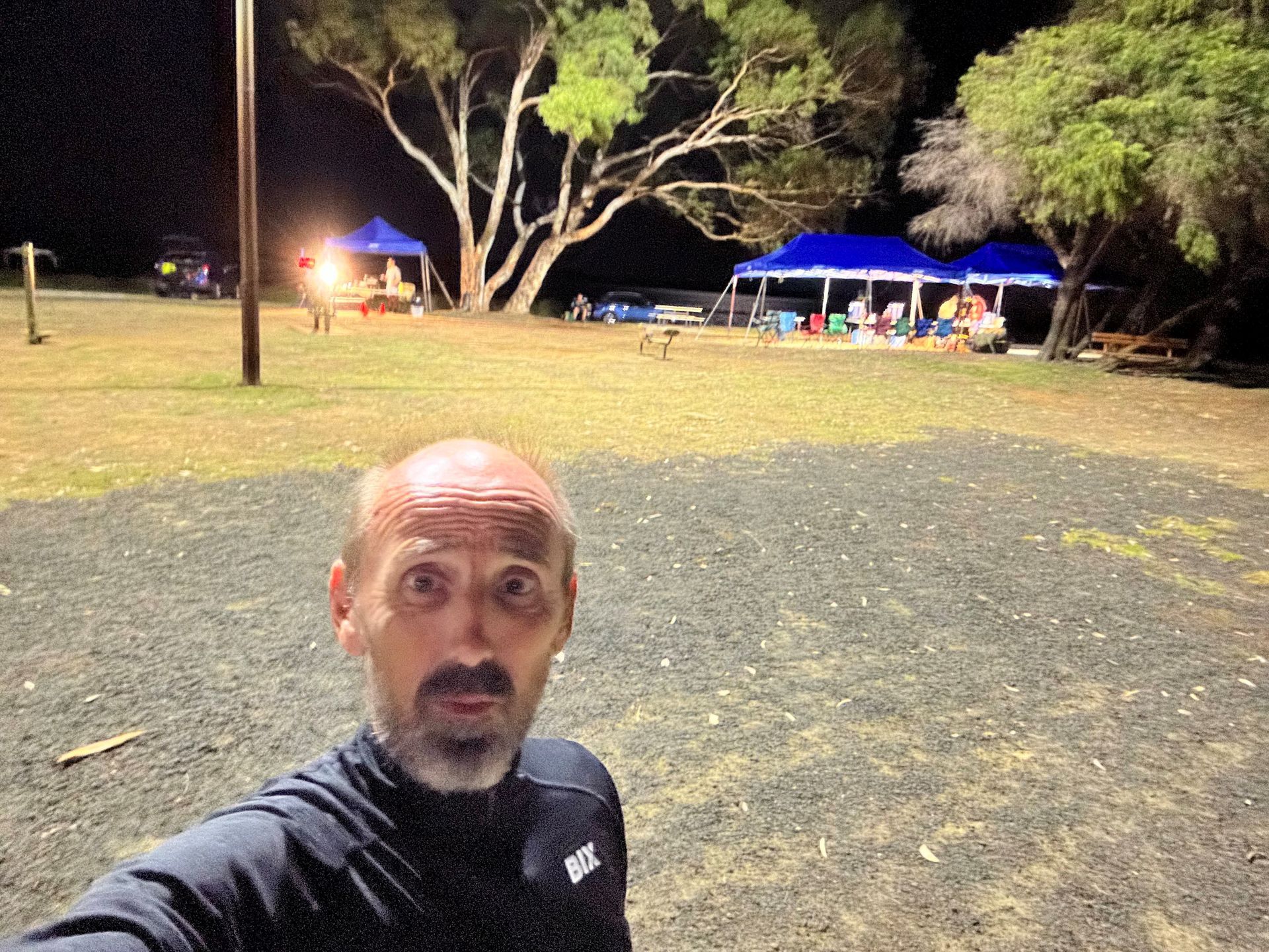 I couldn’t persuade any of the usual suspects to come along so had to drive myself the two hours to the start, leaving Perth at 8pm to arrive at Australind just after 10pm to pick up my bib, chat to race directors Ron McGlynn and Chris Lark and move my gear to the middle aid station where the lovely Charlotte would look after me. I was also lucky enough to have Mick Francis and his partner Val there to give me a hand. Being a 6.25k out and back loop meant that having my gear at the middle aid station I was only ever a maximum of just over six kilometres from it. My plan was to run through the start aid station and also the one at the far end and just use the middle one. I had adopted this strategy on the three previous times I ran the course and it worked a treat albeit I tended to stop at the aid station both ways when initially I intended to only stop one way. If I’m going to break the age group record I’ll need to work on my aid station strategy and employ a dedicated crew with a plan, release the inner ‘Phil Gore’.