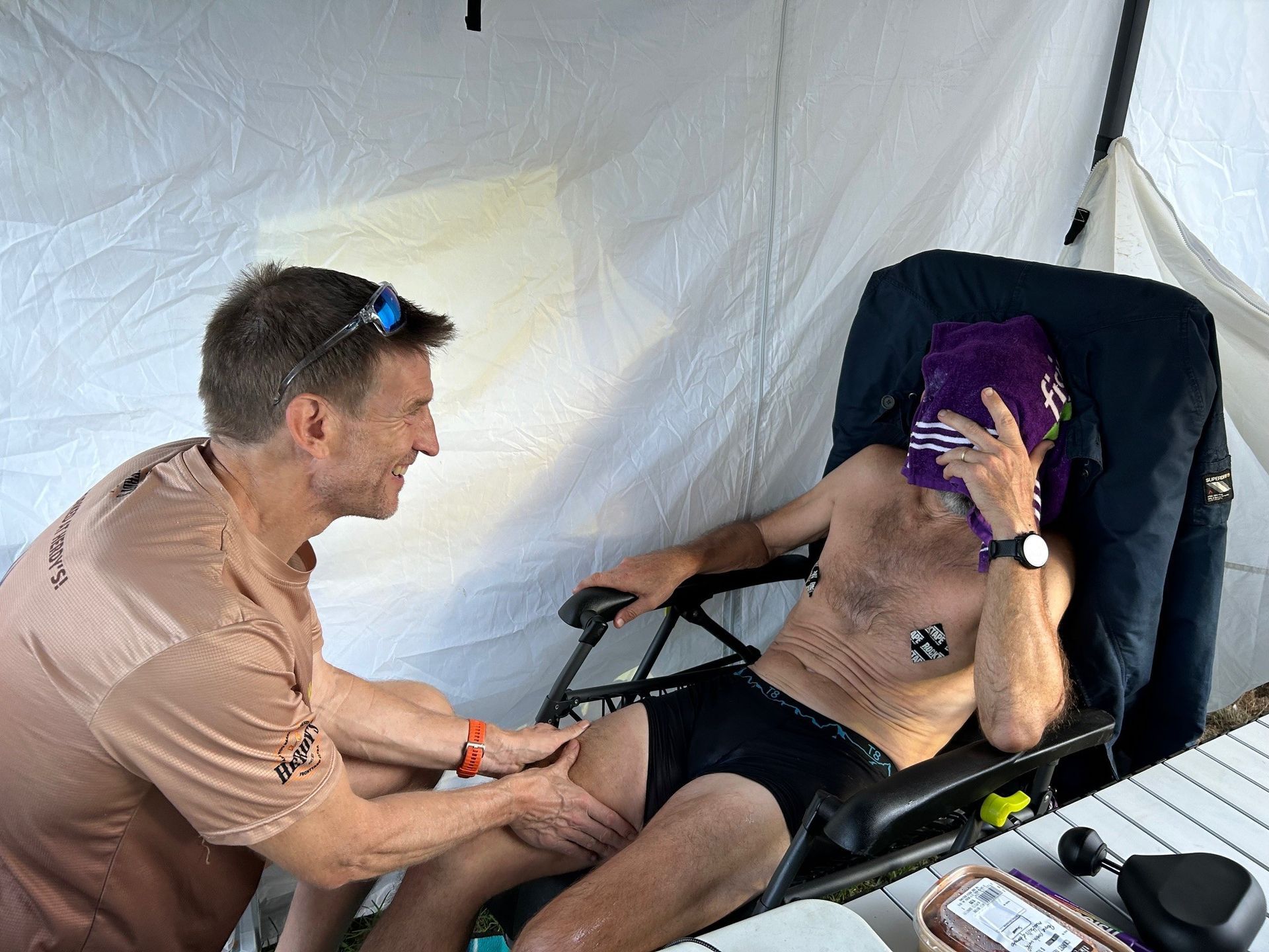 Looking at Strava I could see resting time disappearing before it faded completely as I started to finish and then walk straight to the starting coral, with my crew changing my water, feeding me and adding ice to neckerchief and arm sleeves as I walked through. No time for any ‘chair rest’, it was continual movement. This is the first time I had done this, normally I’m going ok and then I quit, even when I lapping in the high forties or low fifty minutes. This strategy of not spending any time in the reclining chair was used to good effect by Harvey Lewis when he took out the Bigs World BYU Championships in October last year. He’d come in around the late fifty minute mark and then sit on a log near the starting corral while his crew changed his nutrition and hydration and then off he’d go again. Other runners would come in earlier but eventually be worn down by the effort this would take deep into the competition, and I’m talking three or four days. Harvey had a sweet spot of getting in with just enough time but not expending too much effort on the course. By doing this he outlasted everybody.