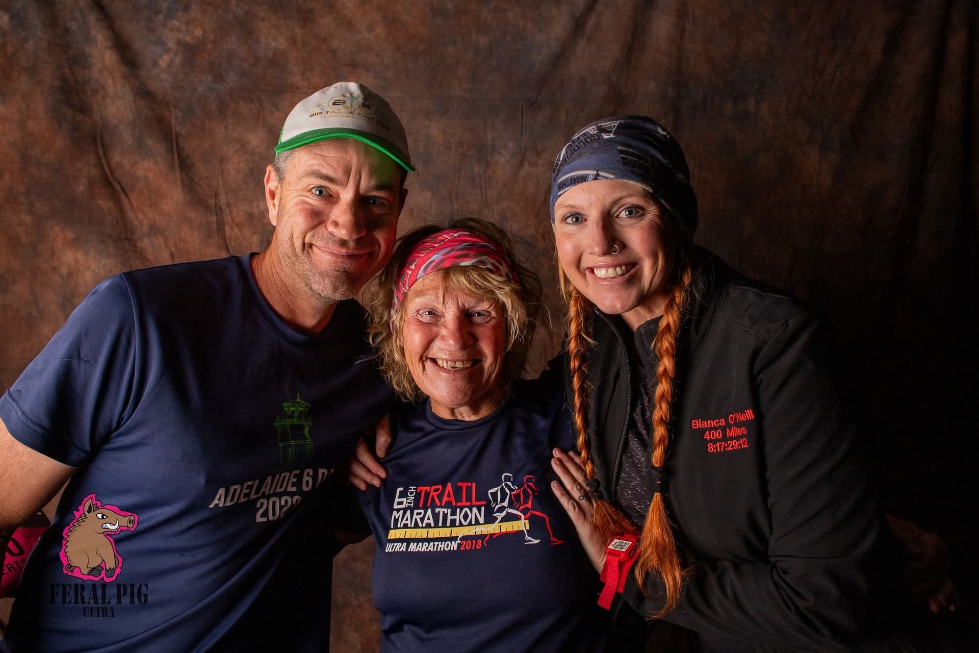 Finally past the pub, and it was the uphill single track towards the finish line, we were nearly there! This section also seemed to take forever, and at one stage I wasn’t even sure we were going the right way. I was with Abdhul, and I could hear Bianca but I couldn’t see her, but eventually we got to the pathway that leads to the finish arch. Nick went on and through by himself, he had done a great race. Finally Bianca said come on lets run through here, it was more a shuffle. I thought I would cry, but I think I was so exhausted I couldn’t, but oh my god, we did it. The hugs were special, thank you all, I have never felt so very proud of myself and Bianca, to finish a race that I truly thought I would never get done. We were taken to have our after photos, and then Jacqui took us to our chairs, took our shoes and socks off, and put our feet in cold water, omg, that was heaven. Cold water, ice, coke, to drink, so very good. What a finish.