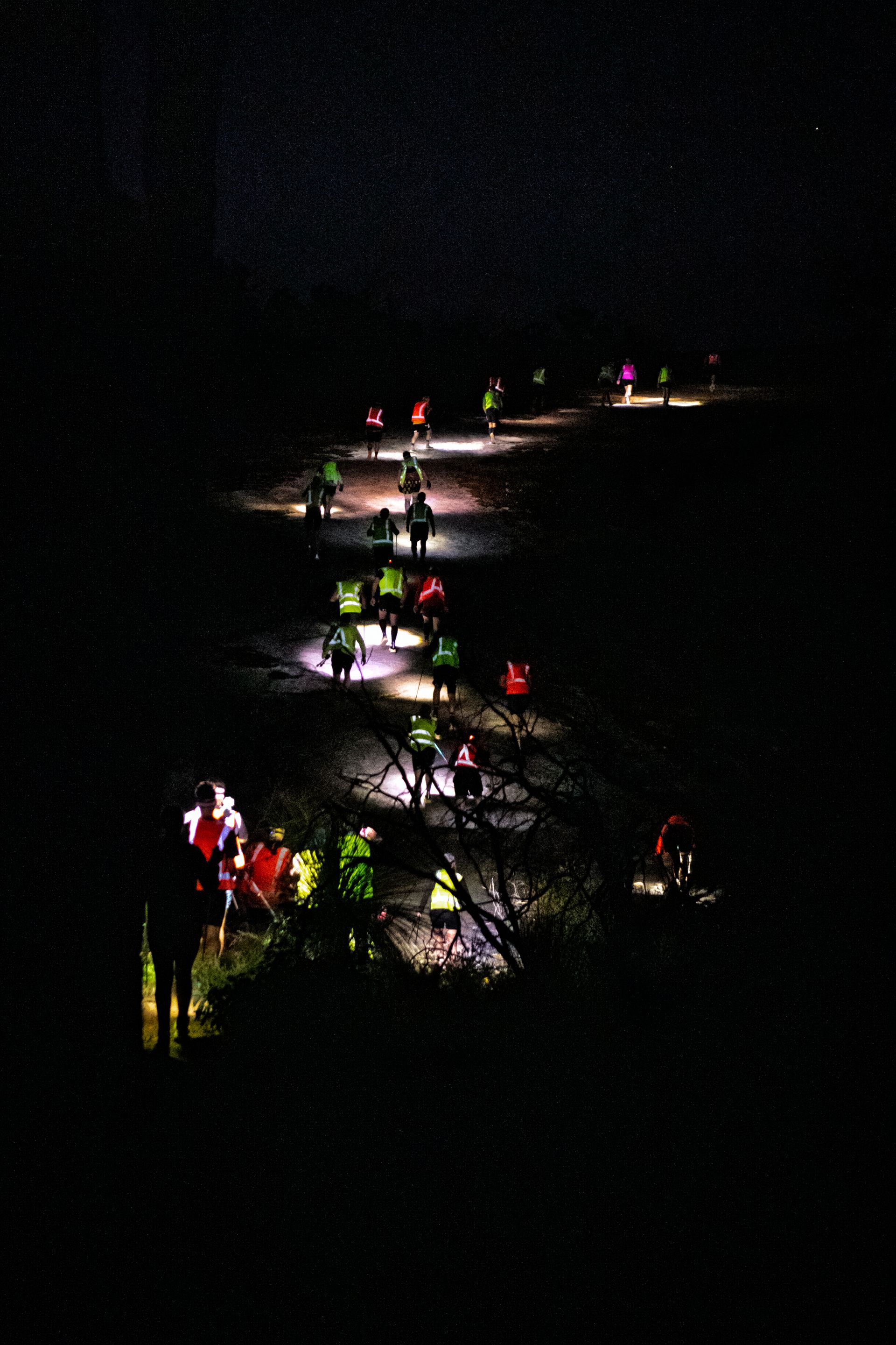 While there Matty came in, not looking so good, and he was placed in a chair and wrapped up in blankets, his day sadly, was done. We didn’t hang around and John had left already, so we scooted off after him. We knew this was actually 16kms as we had recon this section only a few weeks previously, knew we still had to get a wriggle on. It was just after midnight, and cutoff at Disco was 5.10am, but we did need to rest a bit when we got there. This section was quite hilly and also technical in parts, and we were tired and it was dark!