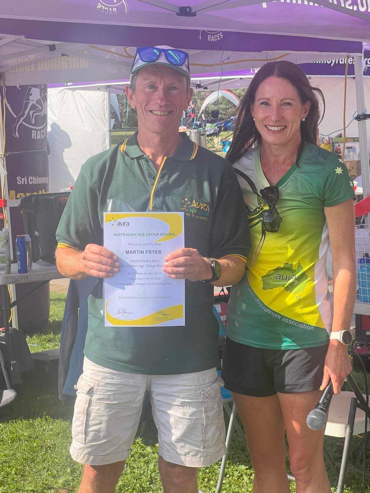 In the Men’s 100km, the top spot was awarded to AURA’s very own Wayne Spies from Brisbane, Qld who secured the win with a whopping time of 6:49:55. This performance saw him claim the M50 Australian Record for 50mi in 5:25:44 and the M50 Australian Record for 100km with his final time, as mentioned, 6:49:55.